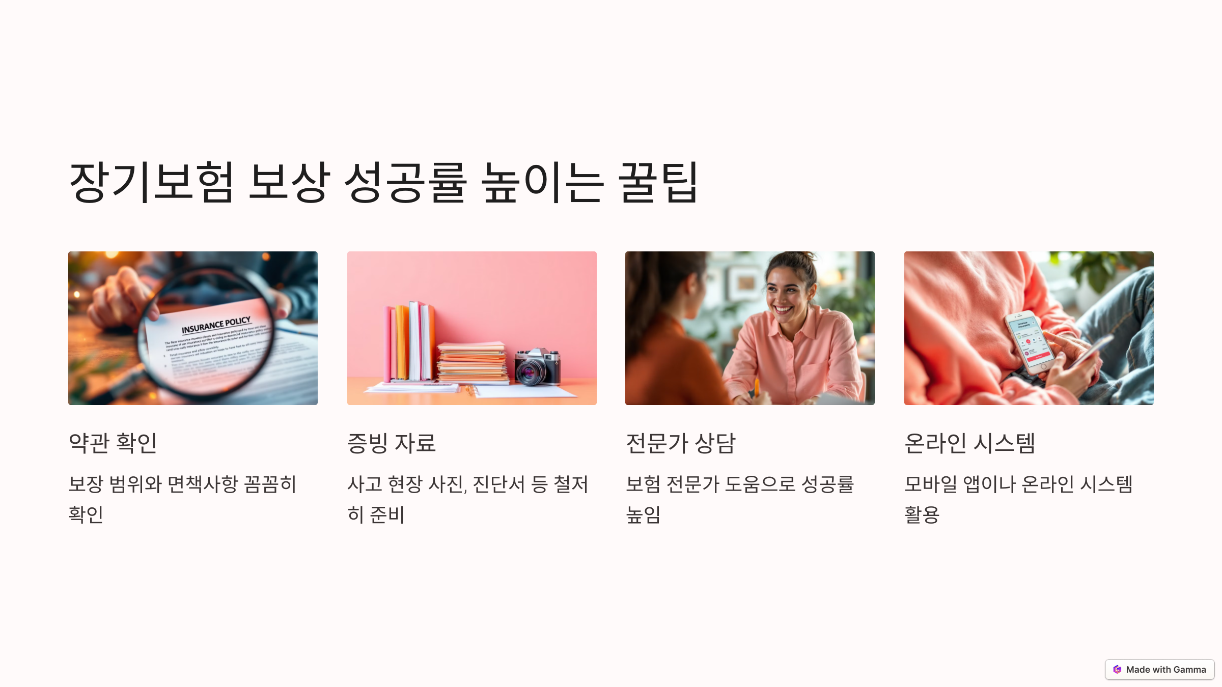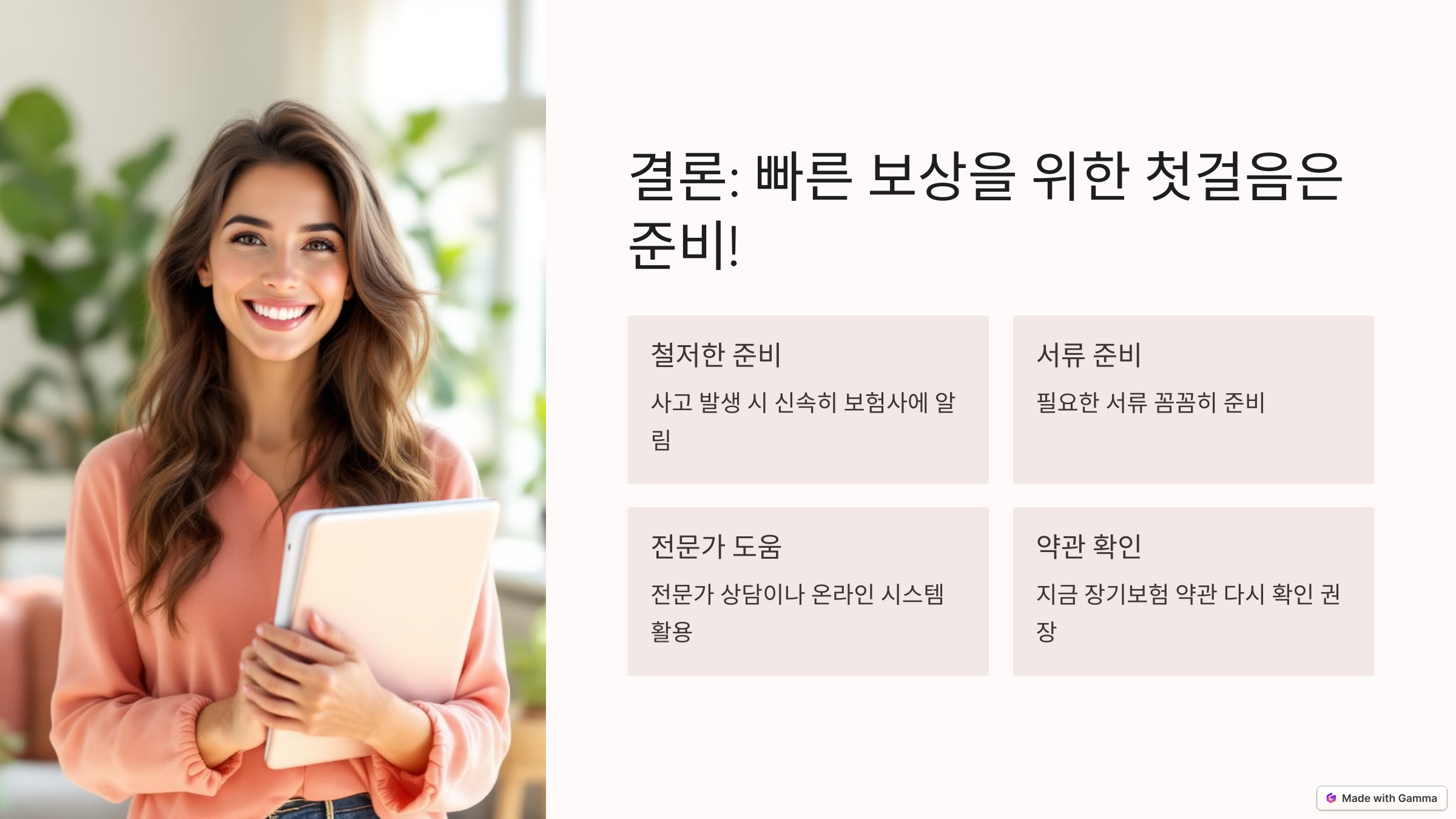 보상받을 일이 없기를 바라지만, 만약의 상황에 대비해 완벽히 준비된 가입자가 되길 응원합니다. 💪