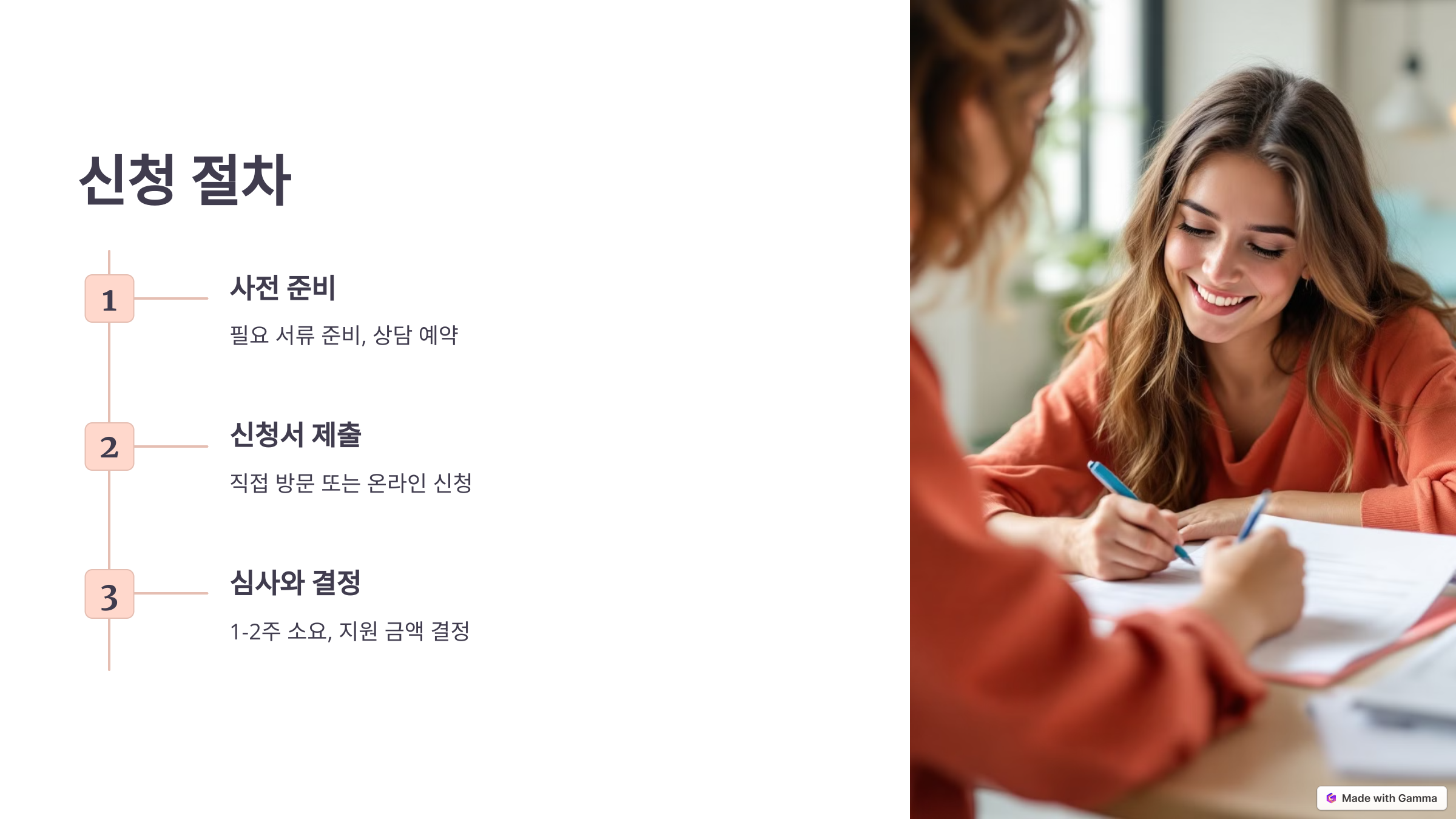 - 직접 방문하거나 온라인으로 신청서를 작성합니다.