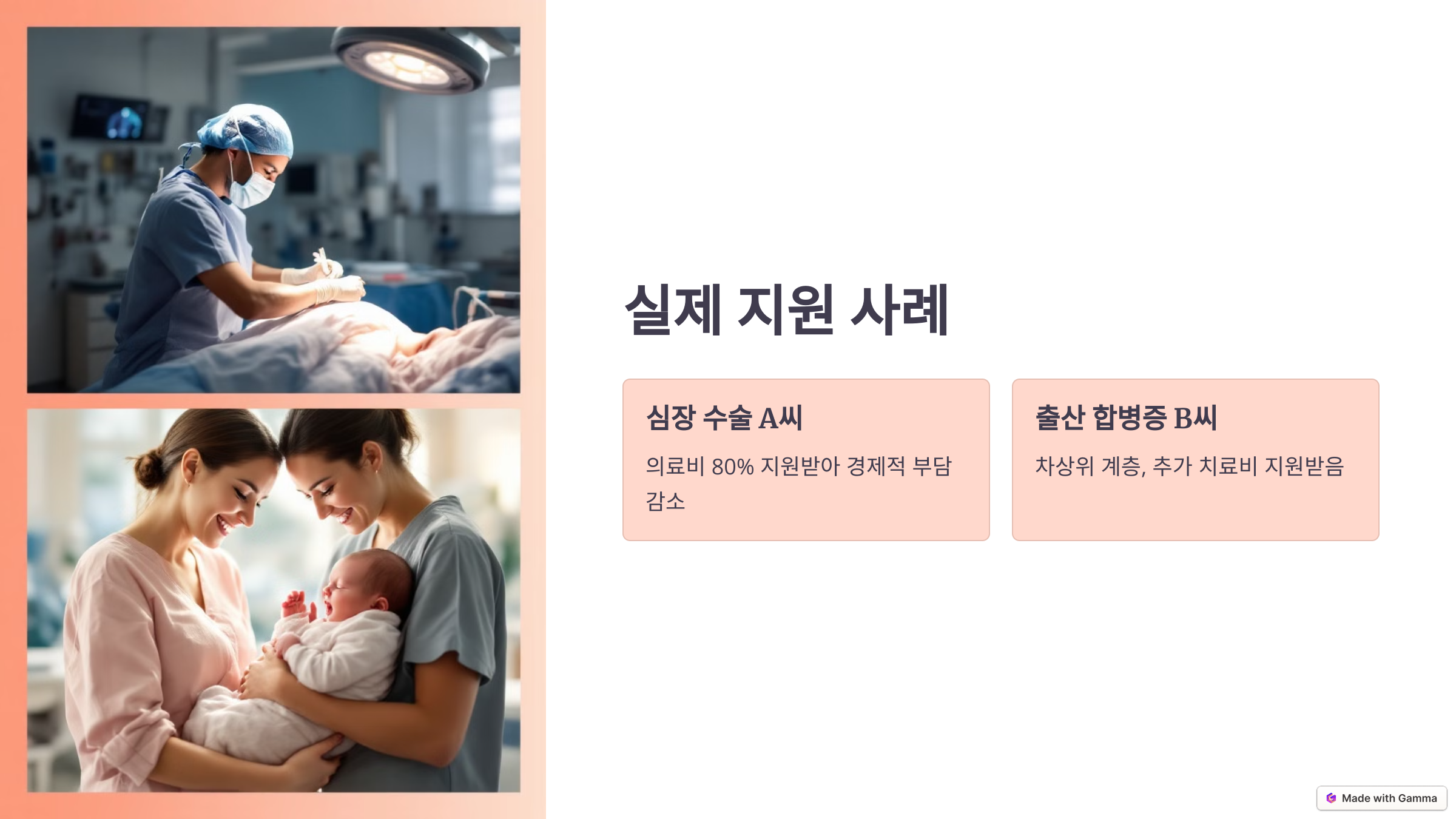 B씨는 출산 중 합병증으로 인해 추가 치료가 필요했으나 의료비가 부족했습니다. 차상위 계층으로 등록된 그녀는 지자체의 긴급 의료비 지원을 받아 치료를 무사히 마칠 수 있었습니다.