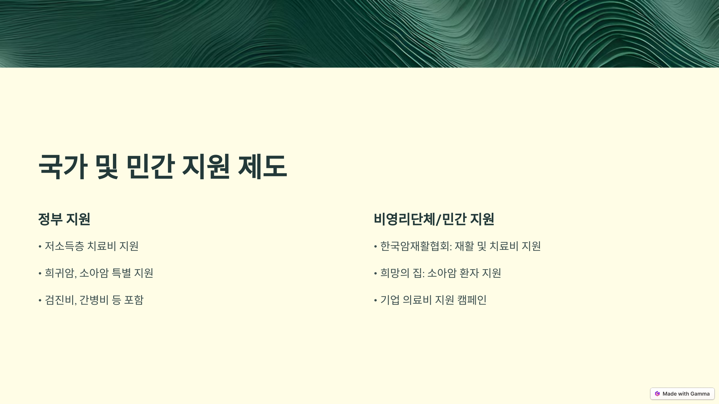 - 희귀암, 소아암 환자를 위한 특별 지원
