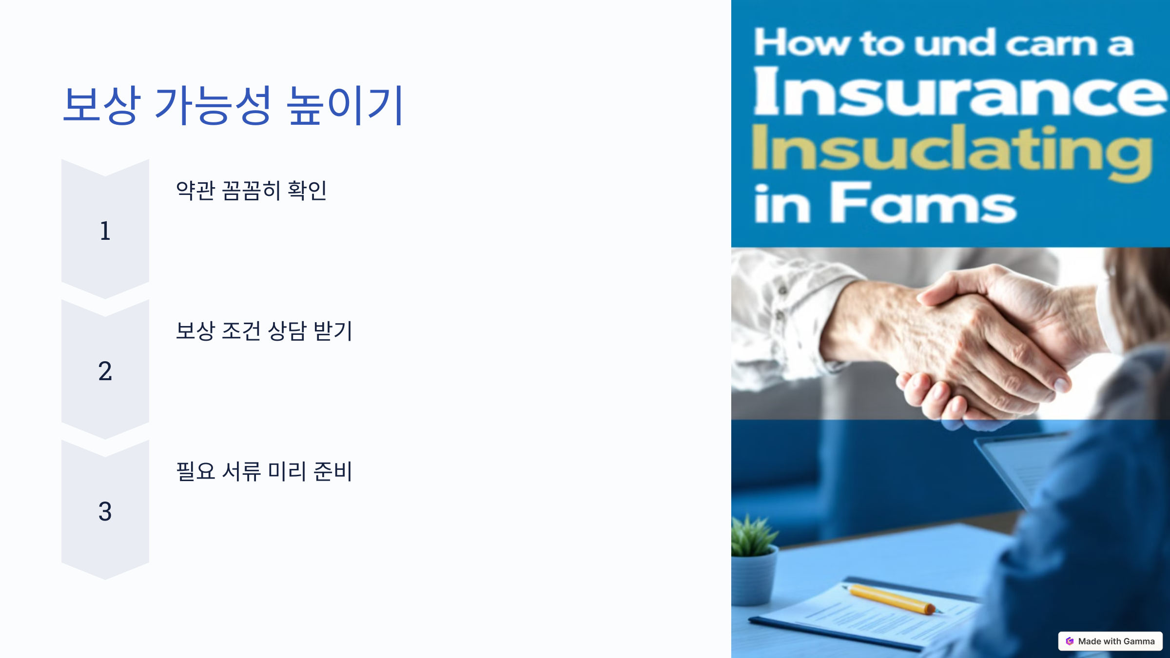 보험의 보상 가능성을 높이려면 가입 전 약관을 꼼꼼히 확인하고, 보상 조건에 대해 상담을 받는 것이 중요합니다. 여러분의 보험도 보상받을 가능성이 높다면, 지금 바로 준비해보세요! 😄