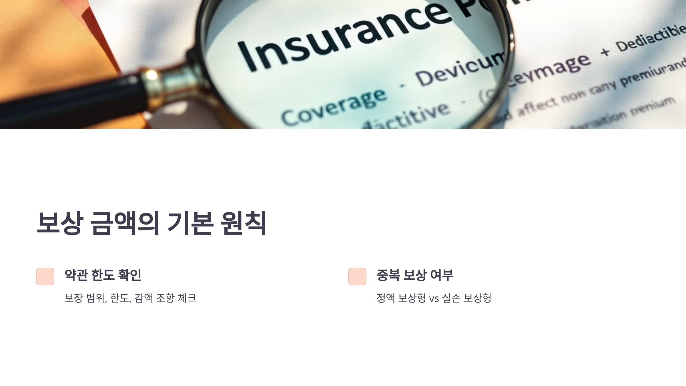• 실손 보상형: 실제 발생한 비용만큼 지급(중복 지급 불가).