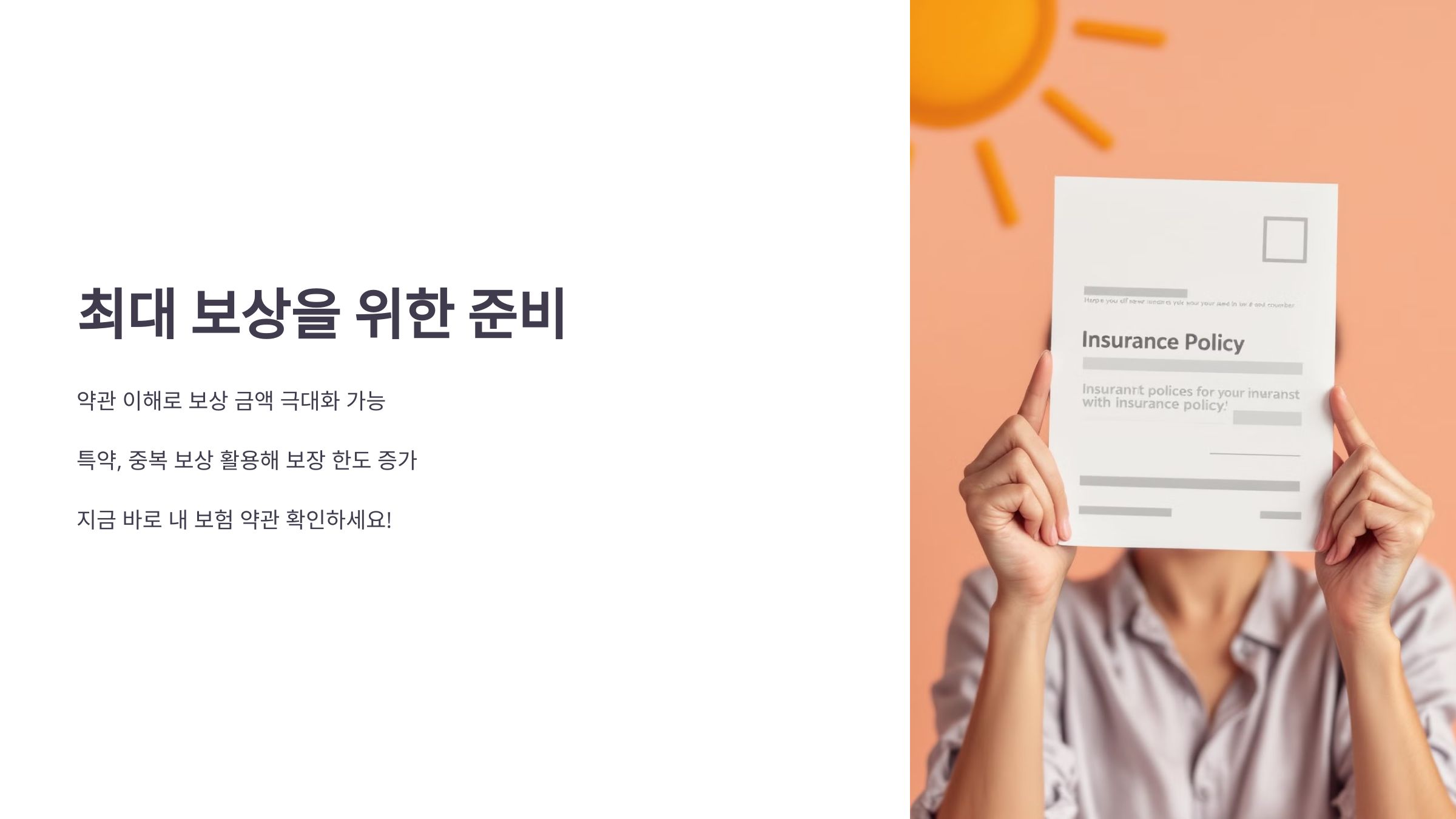 지금 바로 내 보험 약관을 확인하고, 내가 받을 수 있는 최대 보상 금액을 알아보세요! 💰