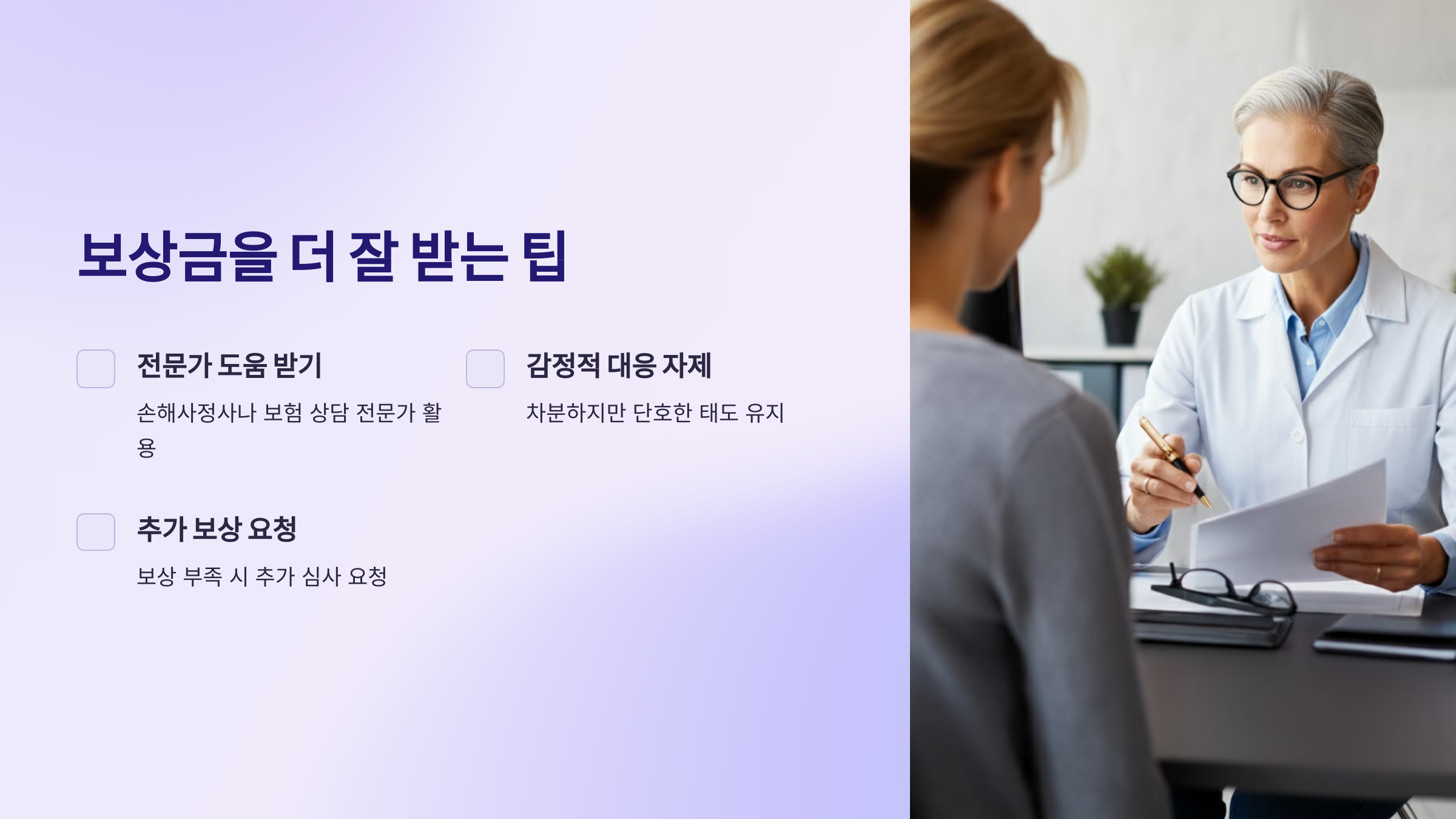 - 손해사정사나 보험 상담 전문가에게 도움을 요청하세요.
