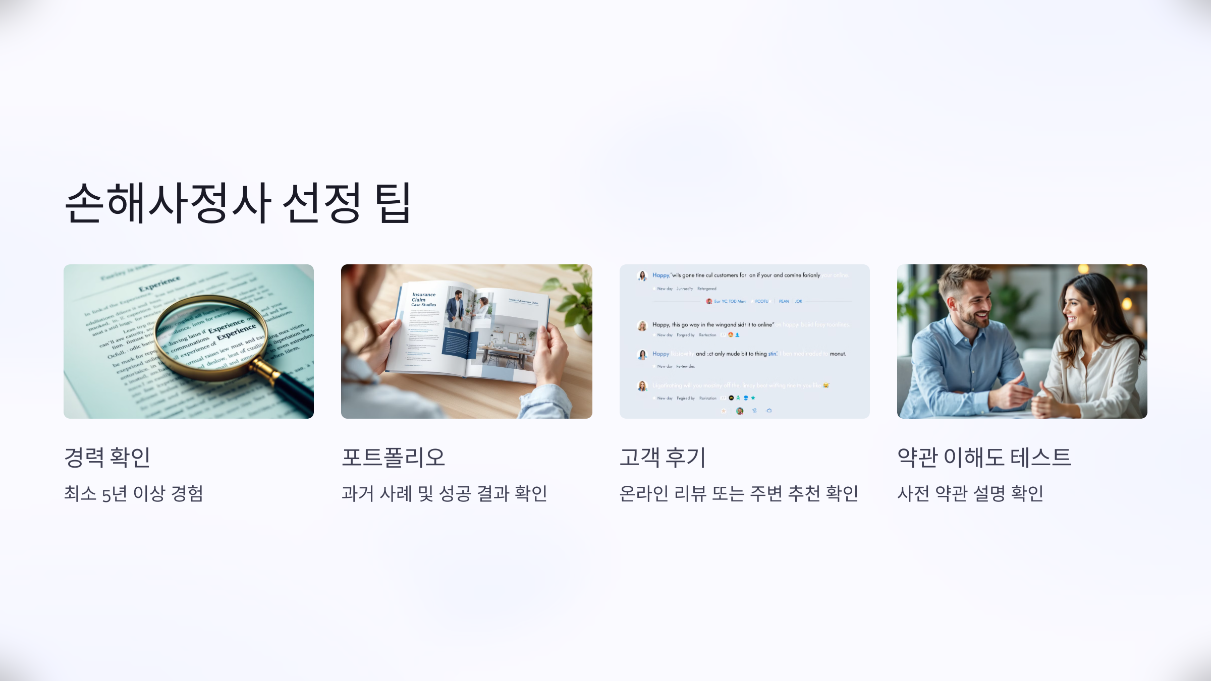 💡 팁: 여러 손해사정사와 상담해보며 비교하는 것이 중요합니다.
