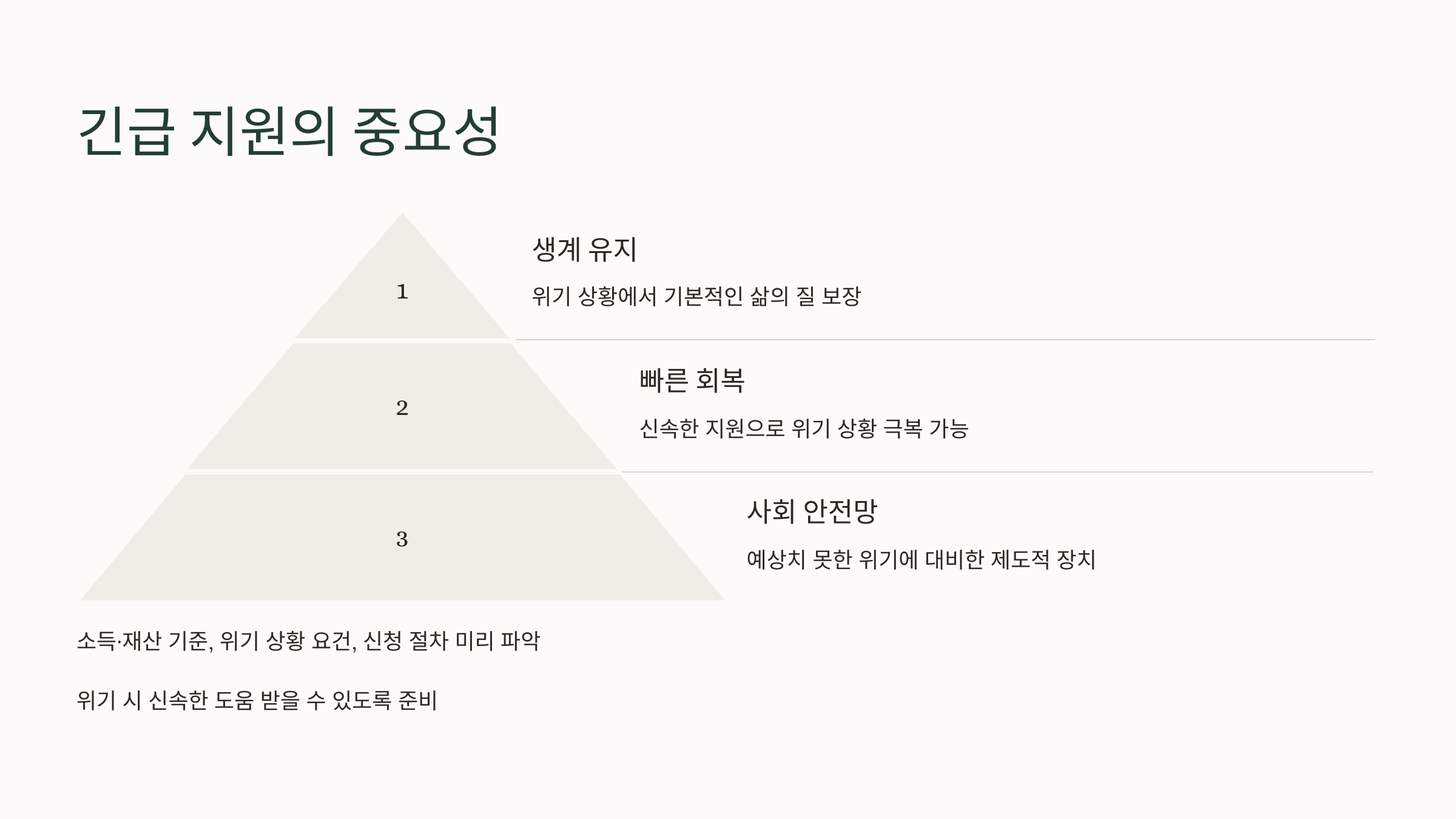 긴급 지원은 예상치 못한 위기 상황에서 생계를 유지할 수 있는 중요한 제도입니다.