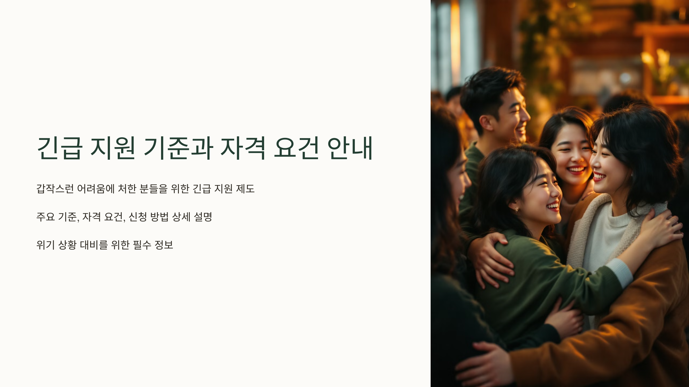 이 글에서는 긴급 지원의 주요 기준과 자격 요건에 대해 알아보고, 어떻게 신청할 수 있는지 상세히 설명합니다.