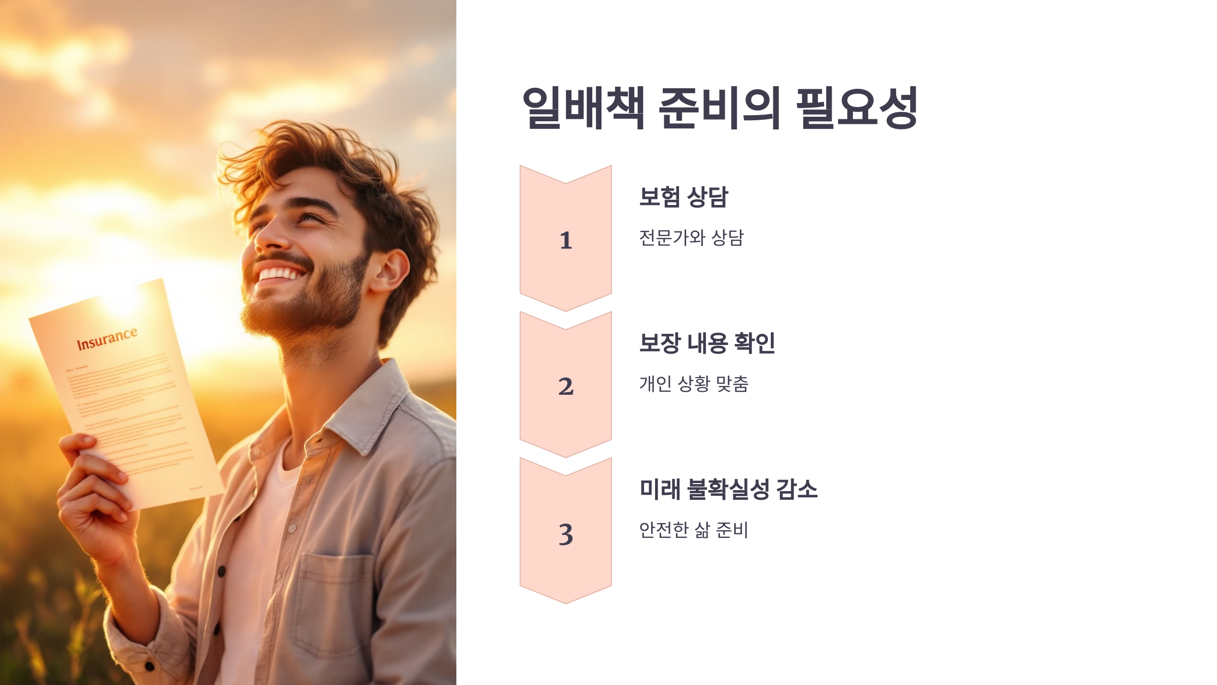 일배책은 단순한 보험이 아니라, 미래를 위한 준비예요. 지금부터 미리 알아보고 대비하면 더 안전하고 걱정 없는 삶을 살 수 있답니다. 😊
