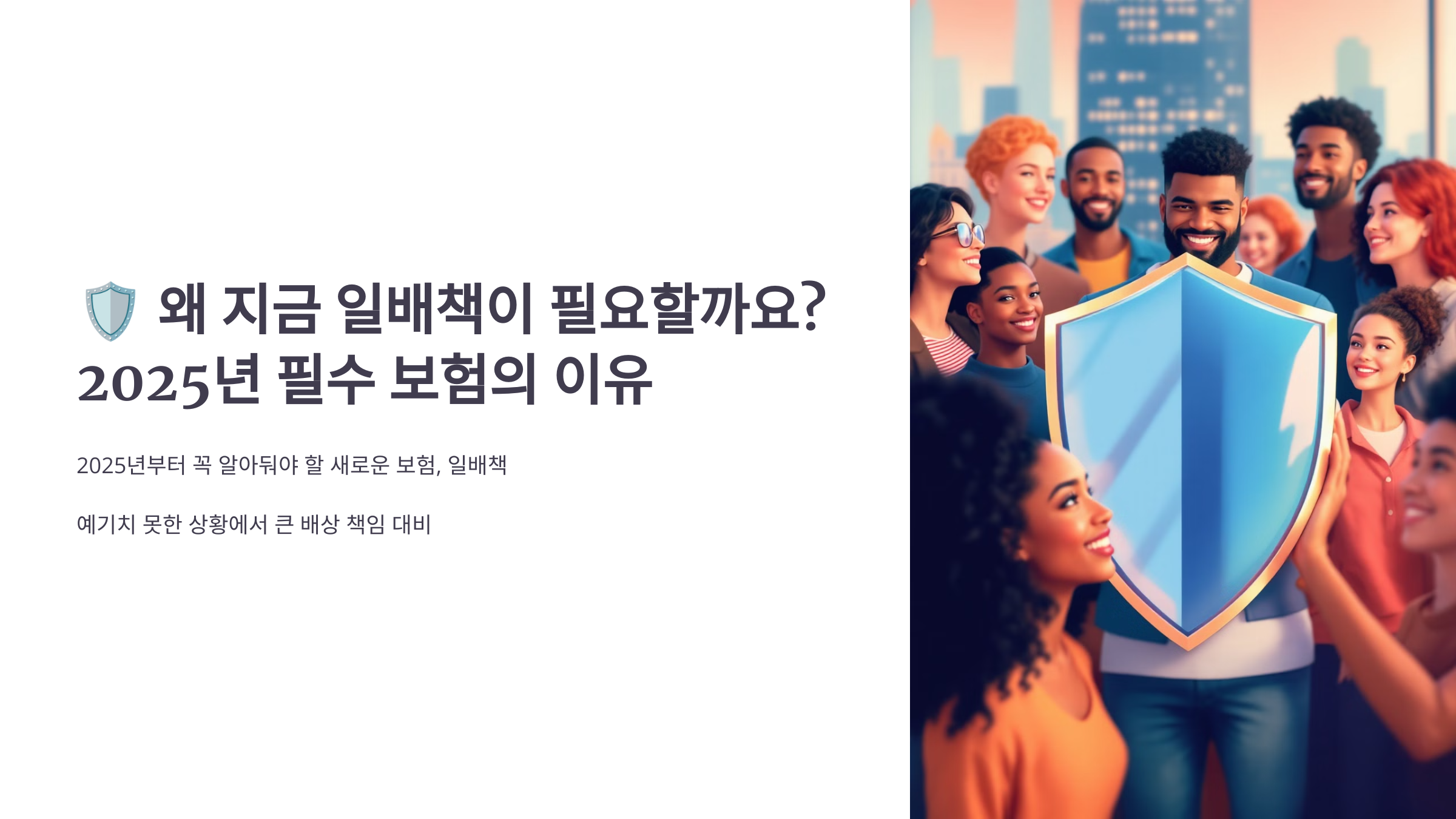 여러분은 혹시 "보험" 하면 어떤 게 떠오르시나요? 자동차 사고를 대비하는 자동차보험, 건강을 지켜주는 실손보험 같은 것들 생각나죠? 그런데 이제 2025년부터 꼭 알아둬야 할 새로운 보험이 있습니다. 바로 일배책, "일반배상책임보험"이에요! 🤔