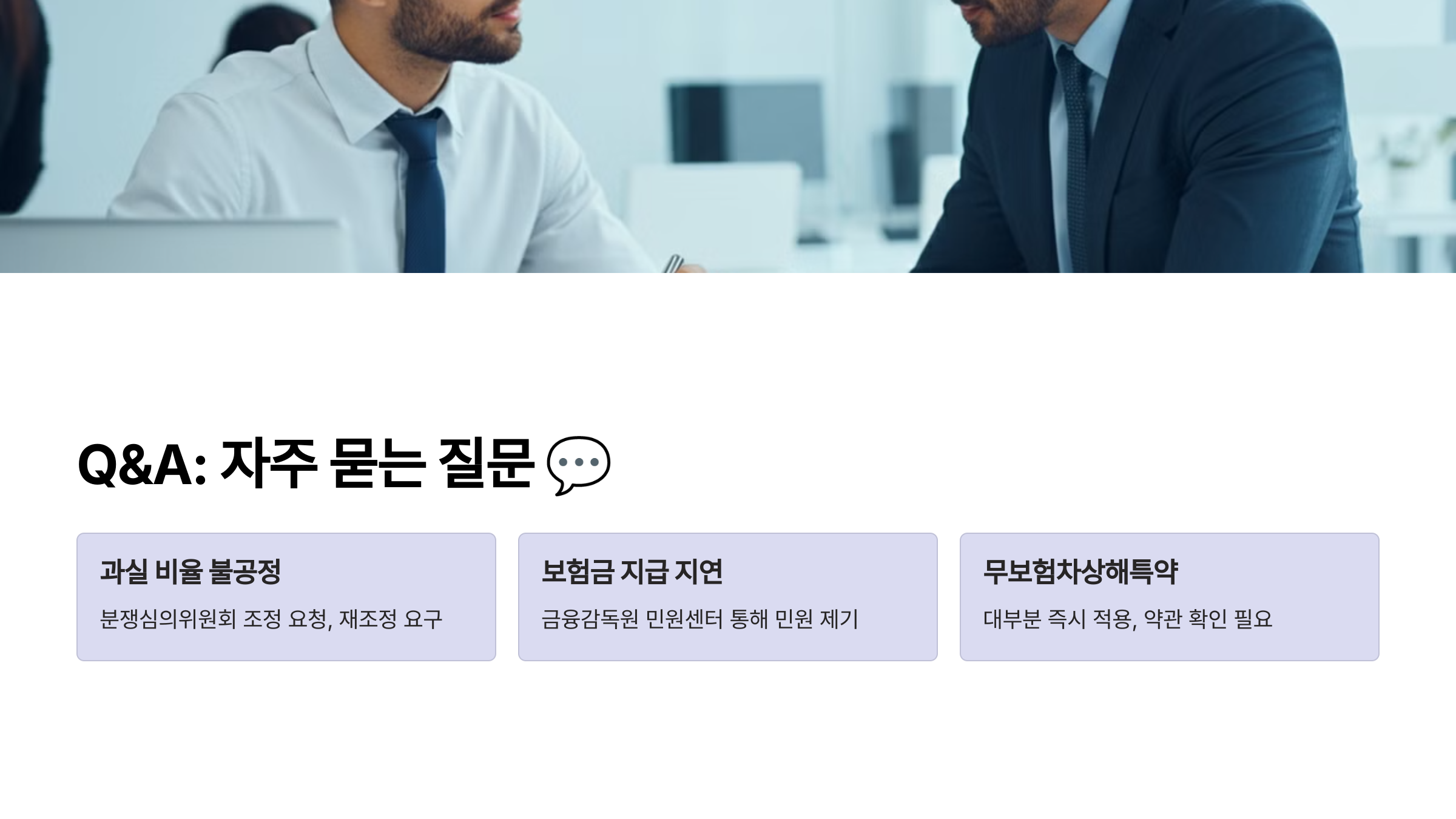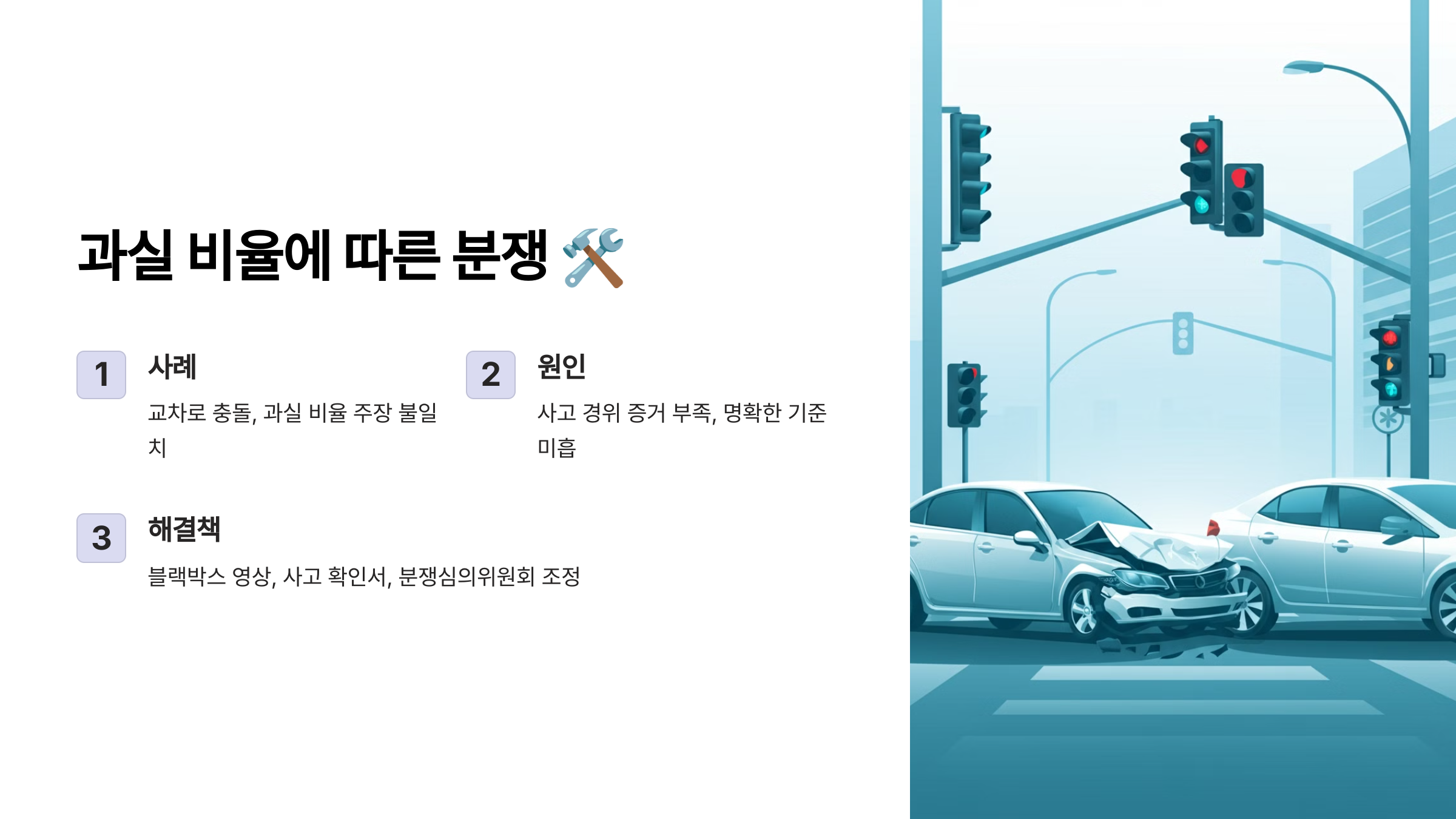 💡 Tip: 과실 비율 분쟁은 금융감독원에서 제공하는 과실비율 자동 계산기를 활용하면 사전에 분쟁을 줄일 수 있습니다.