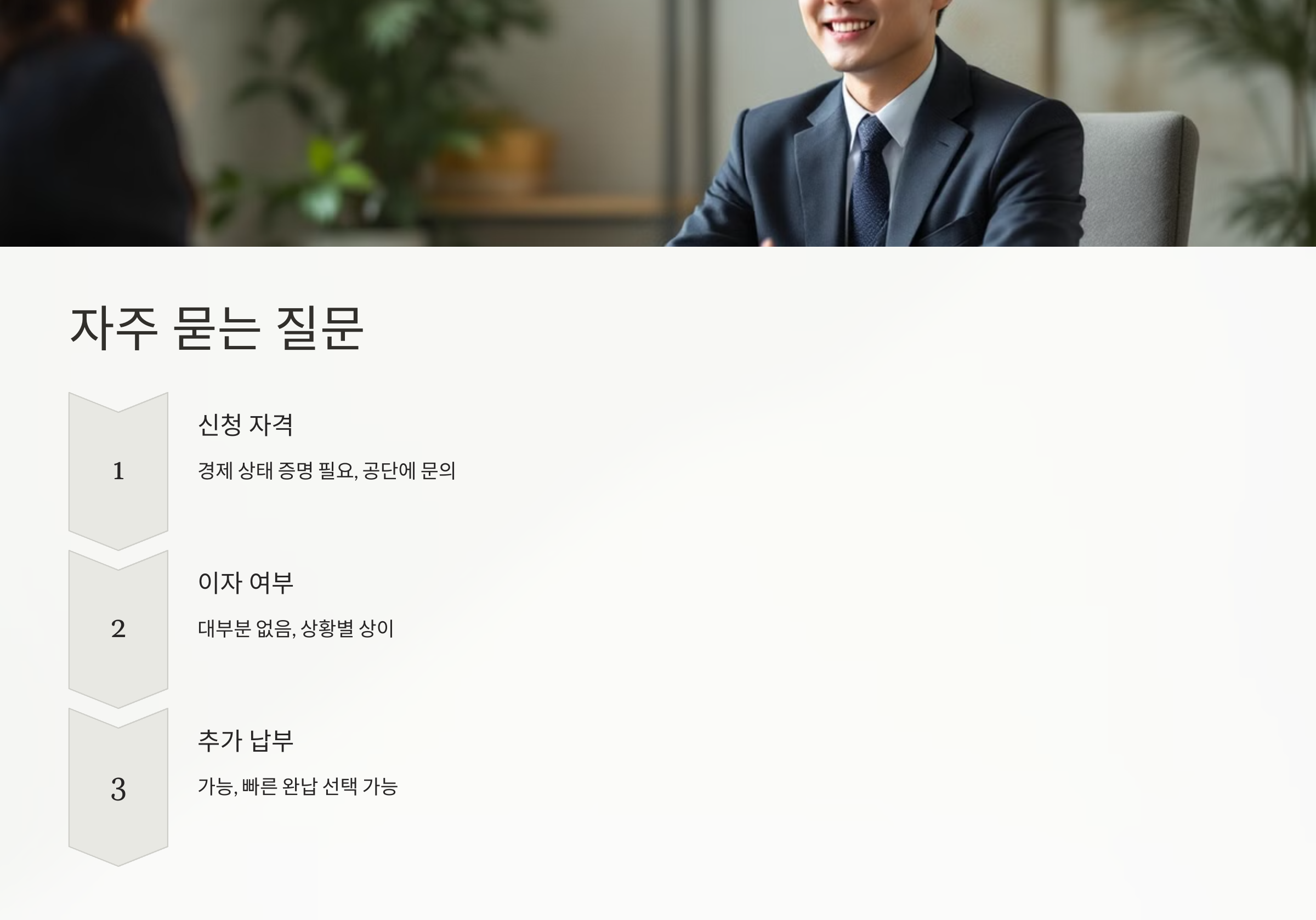 A2. 대부분의 경우 이자는 없지만, 상황에 따라 달라질 수 있습니다. 자세한 사항은 공단에 확인하세요.
