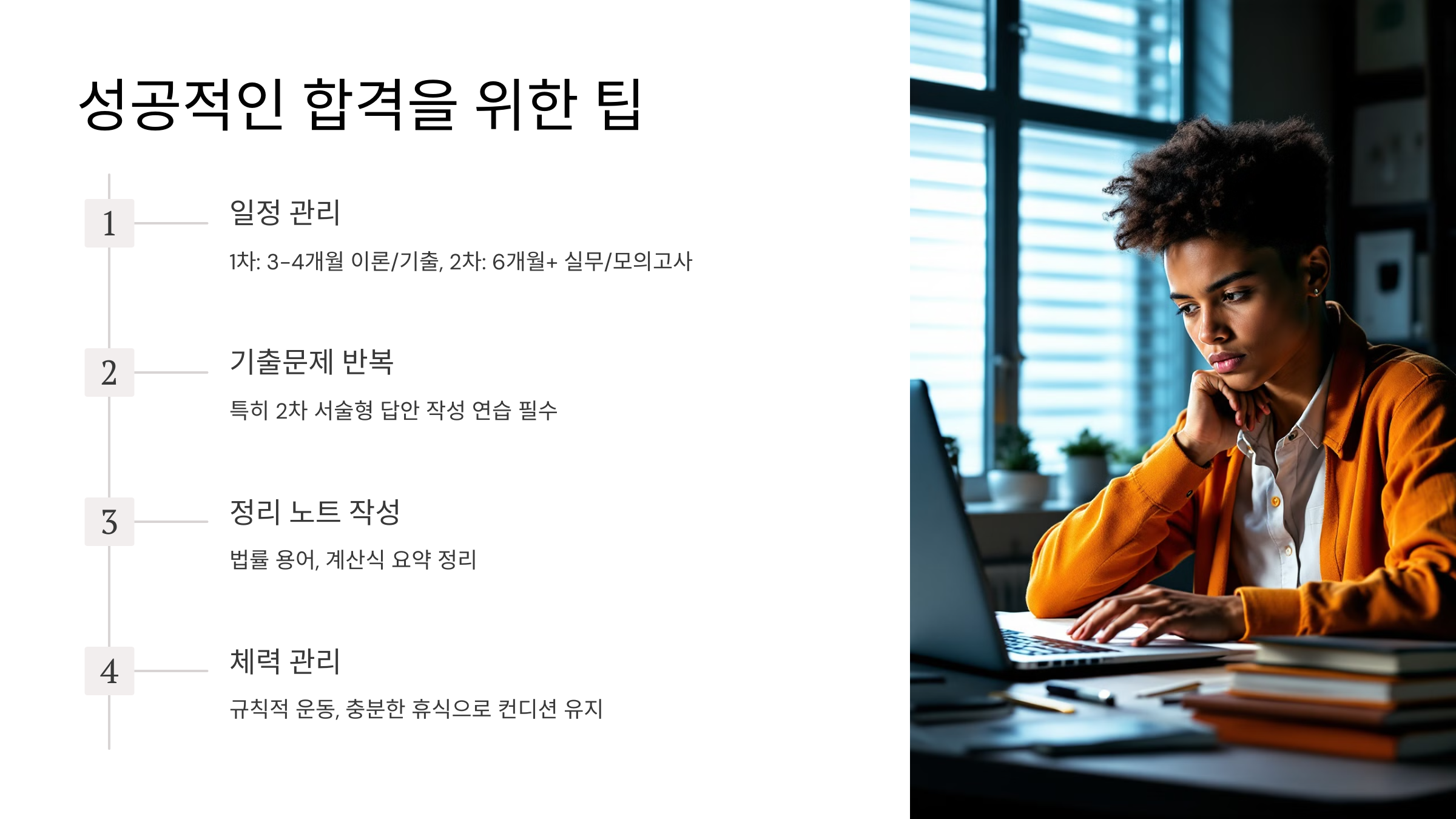 - 2차 준비: 6개월 이상 실무 중심 학습과 모의시험 필수