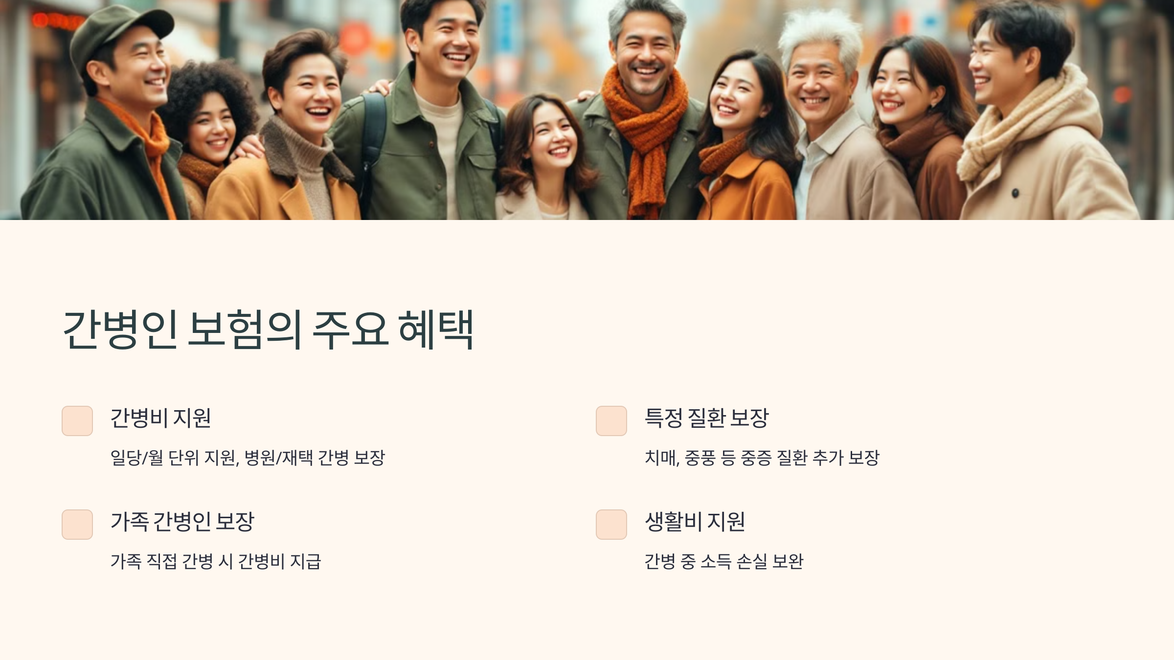 이에 대비해 간병인 보험은 가족과 본인을 위한 안전망 역할을 합니다.