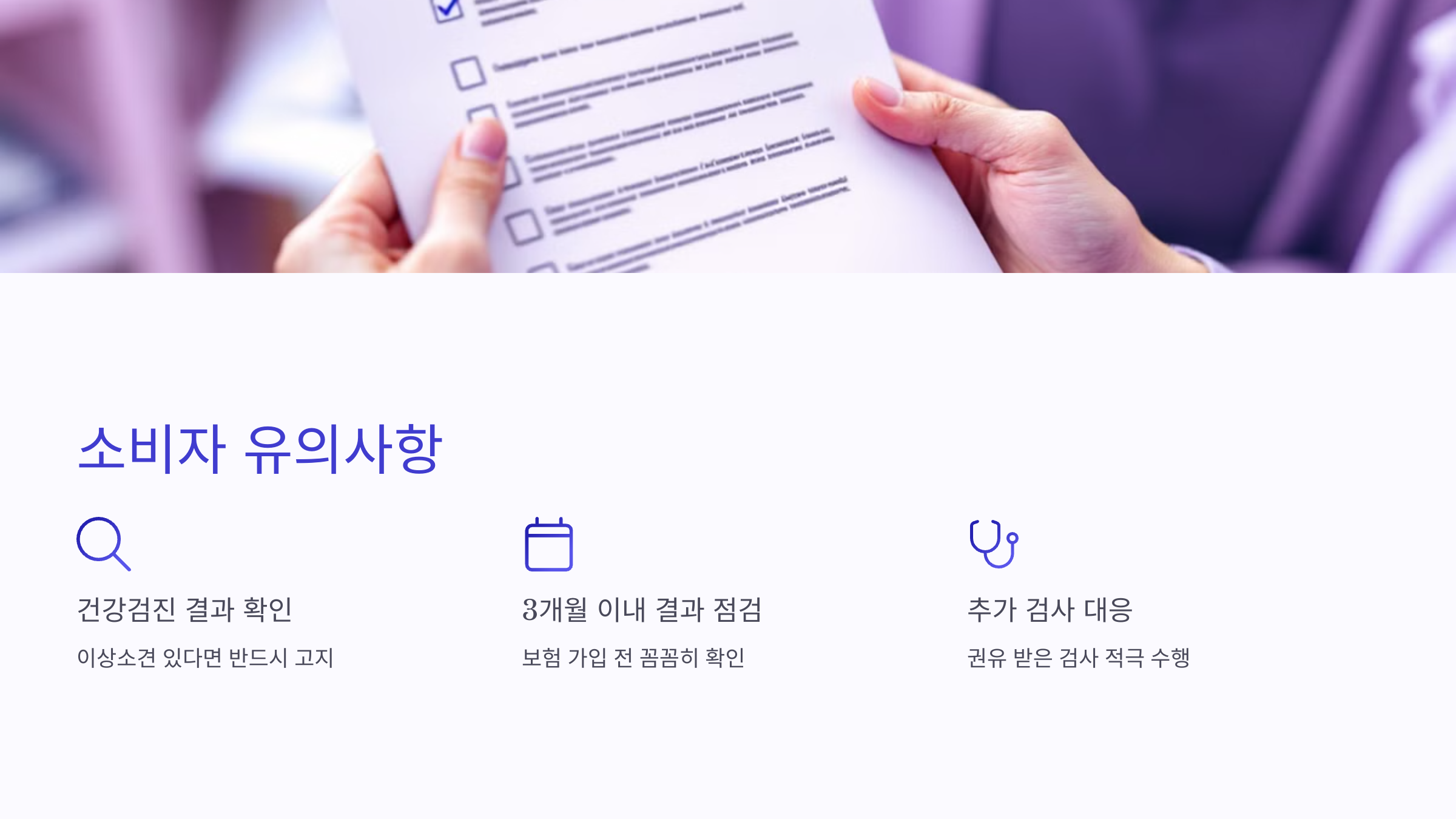 - 보험 가입 전, 최근 3개월 이내 건강검진 결과를 꼼꼼히 확인하세요.