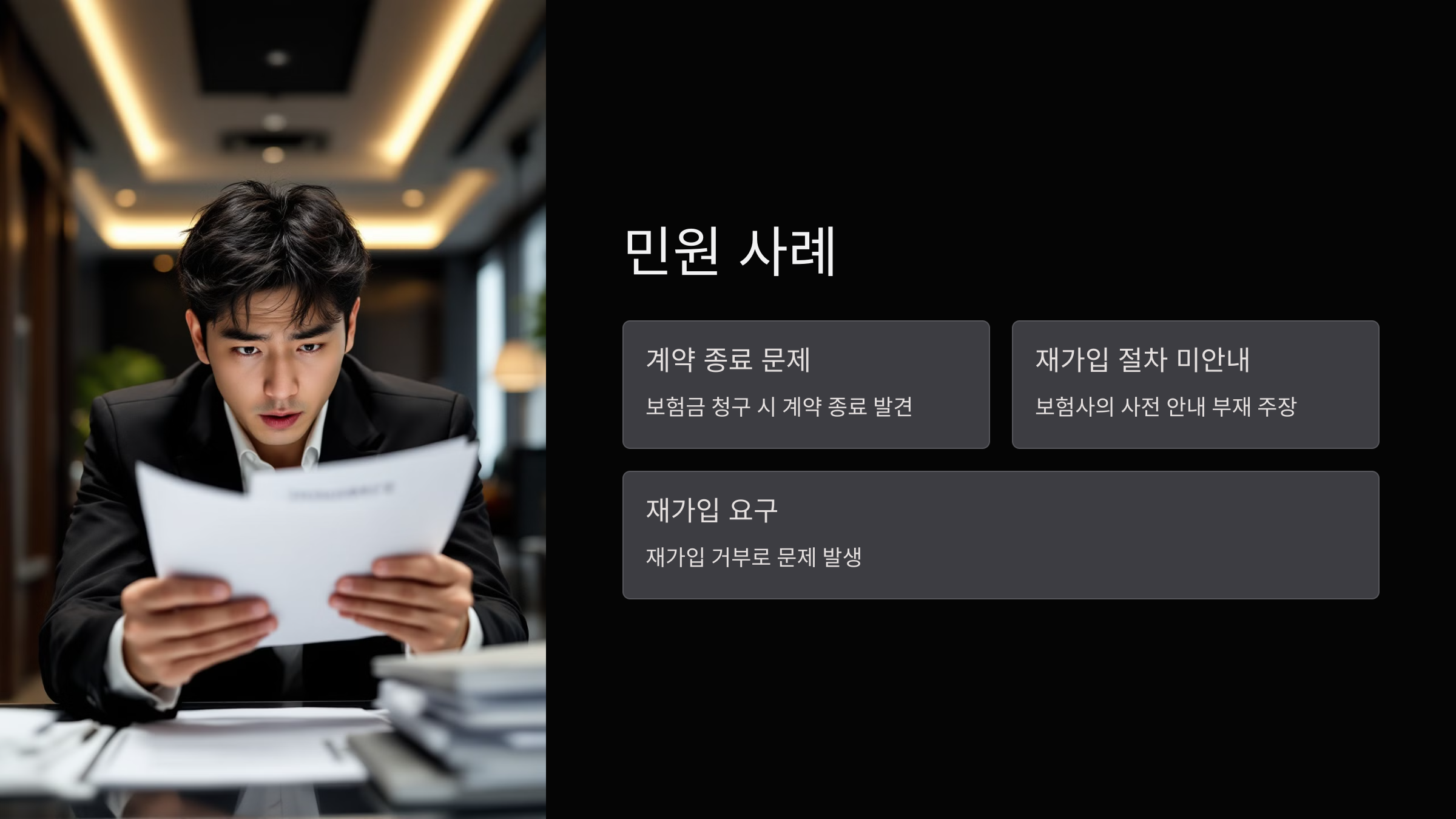보험회사가 재가입 절차를 사전에 안내하지 않았다고 주장하며, 재가입을 요구했으나 문제가 발생했습니다.