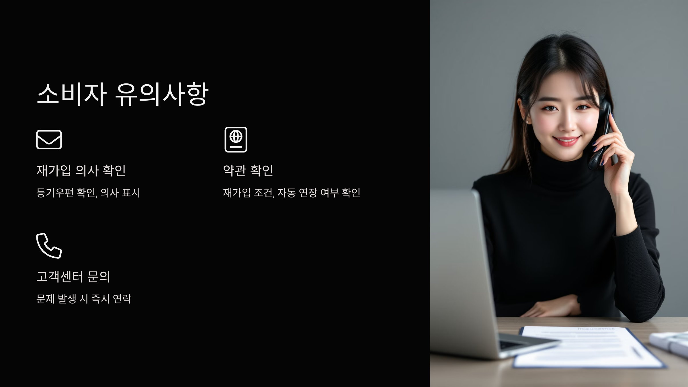 하지만, 재가입 의사를 표시하지 않으면 계약이 종료될 수 있다는 점을 반드시 기억하세요!