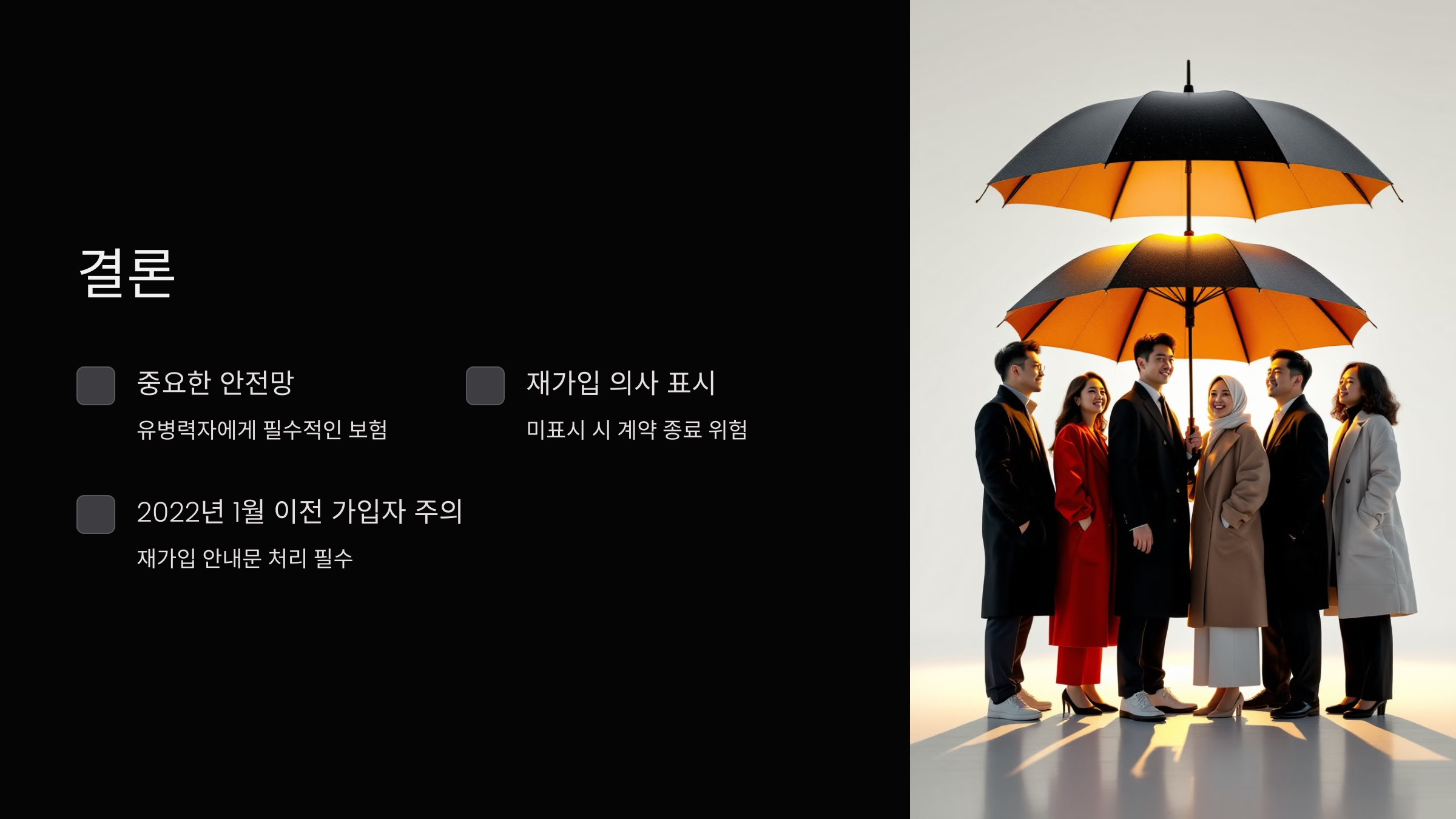- 하지만 이 개정 사항은 2022년 1월 이후에 가입한 계약자에게만 적용되므로, 이전 가입자는 반드시 재가입 의사를 명확히 해야 합니다.