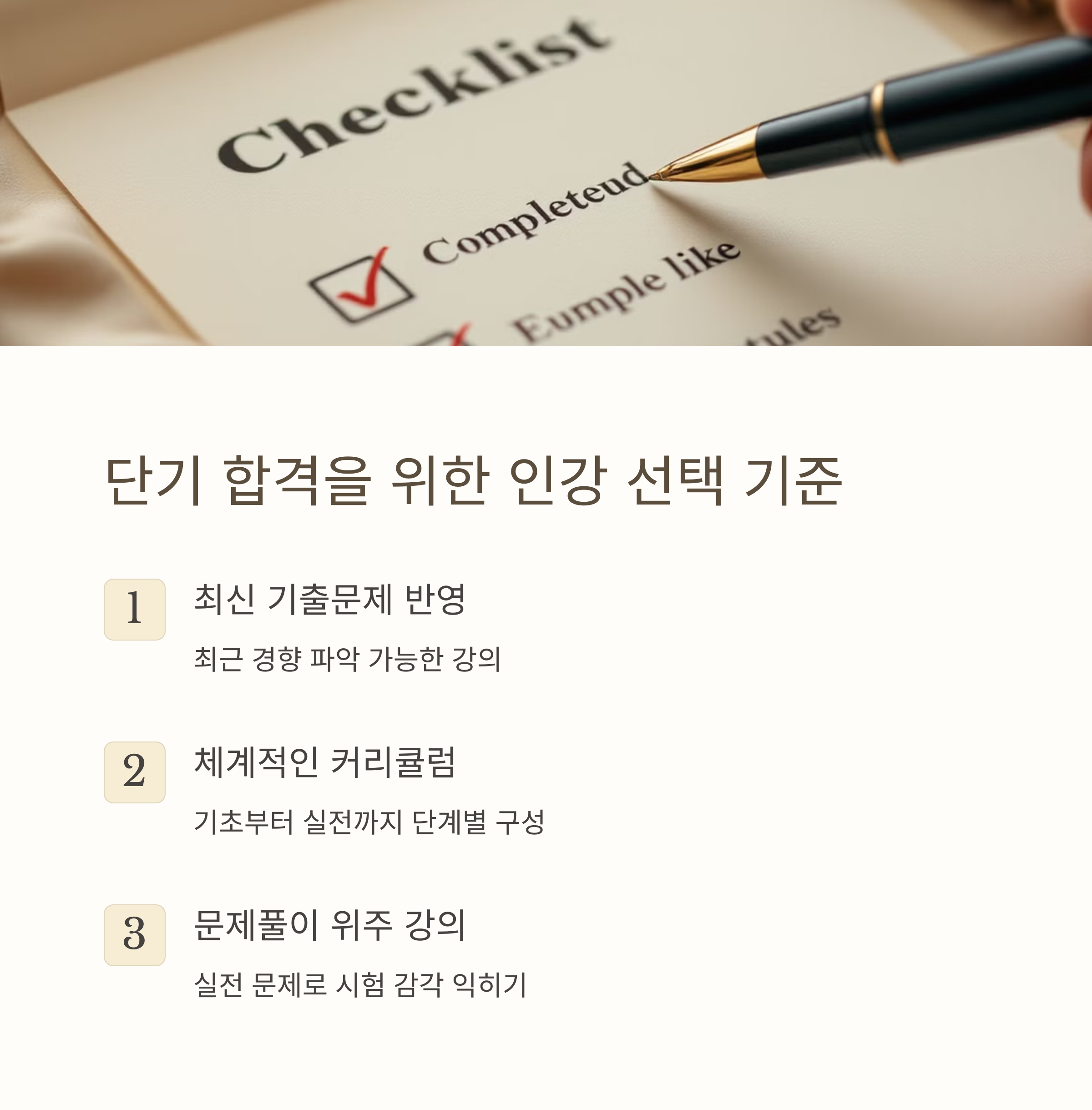 단기 합격을 목표로 한다면, 효율적인 인강 선택과 철저한 복습이 핵심입니다.