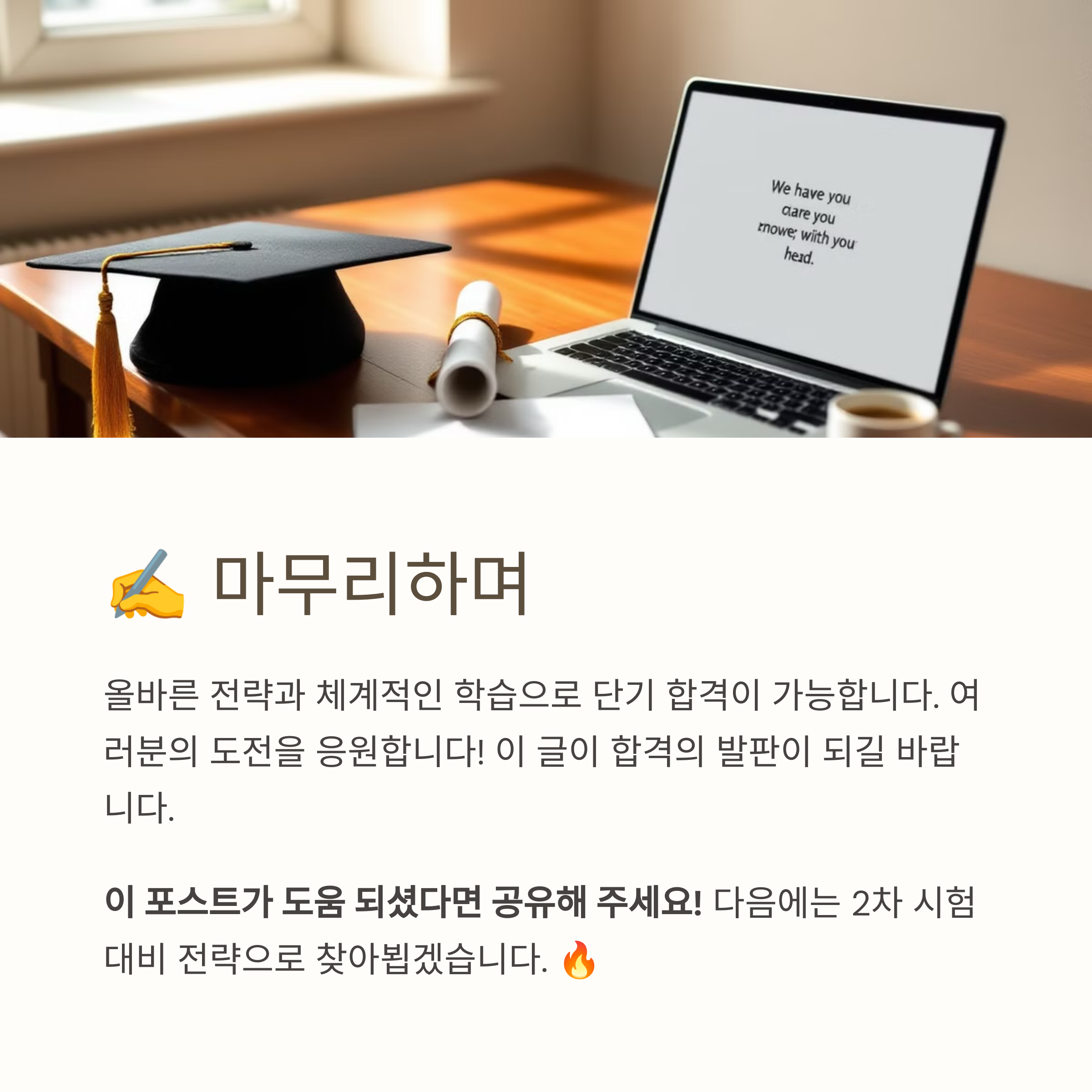 저도 여러분의 도전을 응원할게요! 이 글이 합격의 발판이 되길 바랍니다. 다음에는 2차 시험 대비 전략으로 다시 찾아뵙겠습니다. 🔥