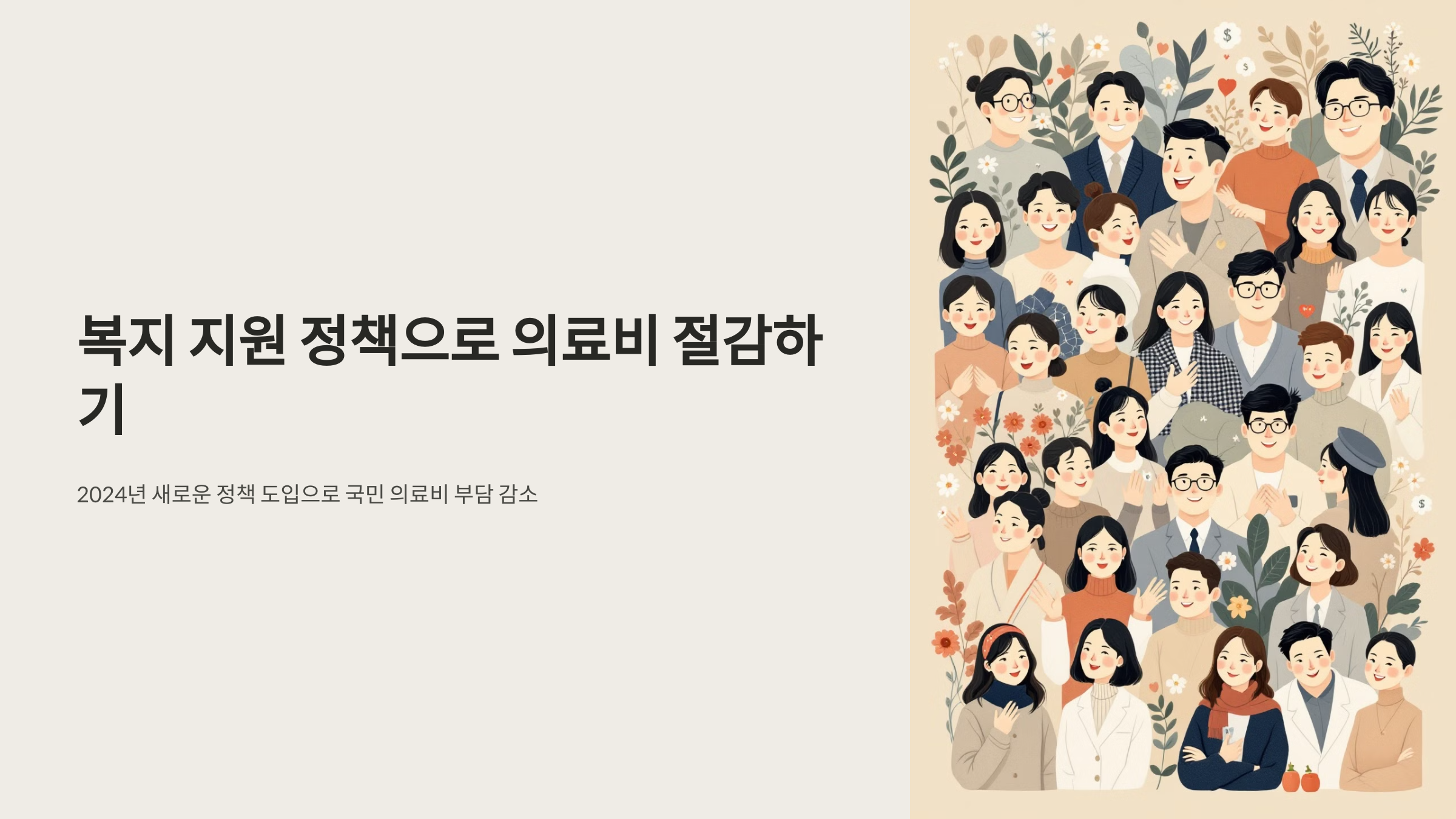 의료비 부담은 많은 가정에 경제적 어려움을 주는 주요 요인 중 하나입니다.이에 따라 정부는 다양한 복지 지원 정책을 통해 국민들의 의료비 부담을 줄이고자 노력하고 있습니다.특히 2024년에는 여러 새로운 정책들이 도입되어 많은 이들이 혜택을 받고 있습니다.이번 글에서는 이러한 정책들을 살펴보고, 어떻게 활용할 수 있는지 알아보겠습니다. 🧐1. 2세 미만 입원진료비 본인부담률 0% 시행 👶2024년부터 2세 미만 영유아의 입원진료비 본인부담률이 전액 면제되었습니다.이 정책은 생애 초기 의료비 부담을 줄이기 위한 조치로, 식대를 제외한 대부분의 입원비용이 건강보험을 통해 지원됩니다.📌 유의사항: 비급여 및 선별급여 항목은 제외되므로 사전에 확인이 필요합니다.➡️ 출처: 보건복지부 - 입원진료비 지원 안..